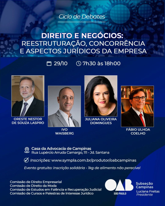 Local: Casa da Advocacia de Campinas | Rua Lupércio Arruda Camargo, nº 111 Jardim Santana - Campinas/SP